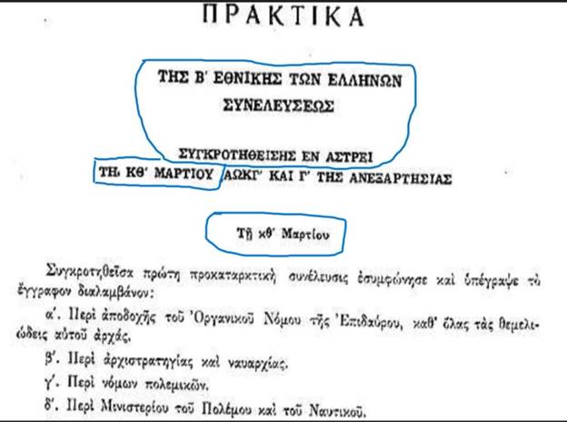 «Εν Άστρει τη 29 Μαρτίου 1823 και γ’ της Ανεξαρτησίας », το Άστρος το βρήκαν εκεί οι πληρεξούσιοι της Εθνοσυνέλευσης. v