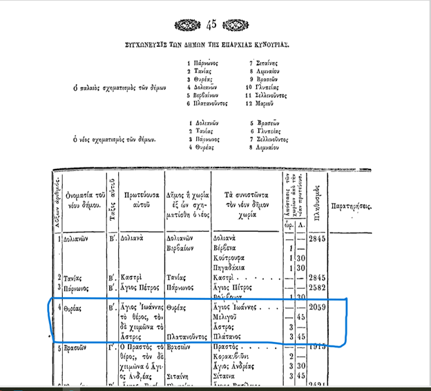 - 16-2 )Δήμος Θυρέας (1835-1912), ΦΕΚ 1841 και «τα συνιστώντα το δήμον χωρία»
