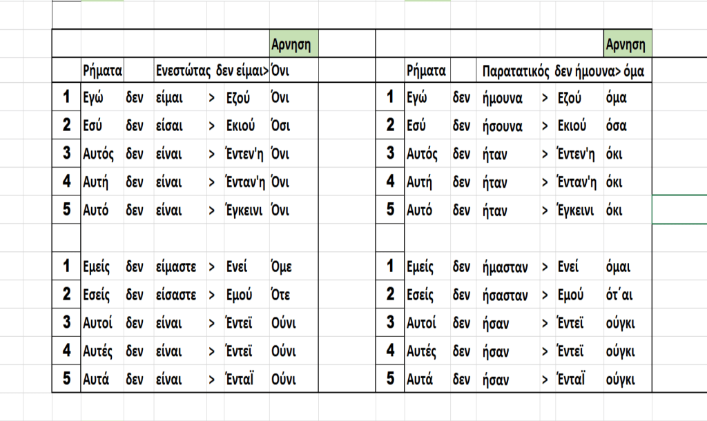 Άρνηση – Ενεστώτας δεν είμαι> όνι