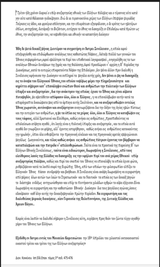 Ο  “Ιερός Χώρος “ της  Β’ Εθνοσυνέλευσης  των  Ελλήνων και το Προαύλιο της  Σχολής Καρυτσιώτη (Μουσείου Άστρους), να  γίνουν ελεύθερα  προσβάσιμα χωρίς περιορισμούς .