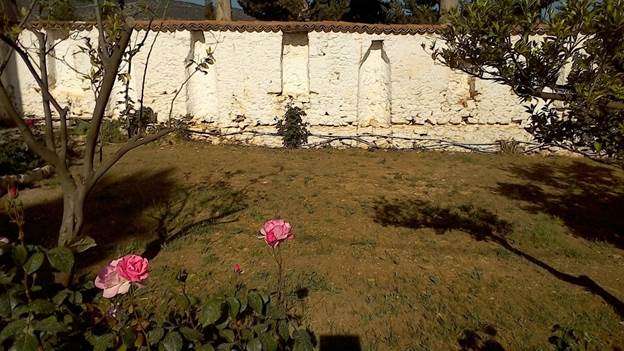 Στην παραπάνω φωτογραφία διακρίνεται η ιστορική και επιβλητική κεντρική είσοδος του αγροκηπίου, αριστερά από τα φοινικόδεντρα, από εδώ πέρασαν οι πληρεξούσιοι της Εθνοσυνέλευσης και ο Κολοκοτρώνης, στα αριστερά οι δύο σειρές με τις περίπου 20 μουσμουλιές, που δεν καταφέραμε να τις διατηρήσουμε….. και ξεχάστηκαν από τους αρμόδιους, τα τετράγωνα «δρομάκια» με τα λουλούδια.