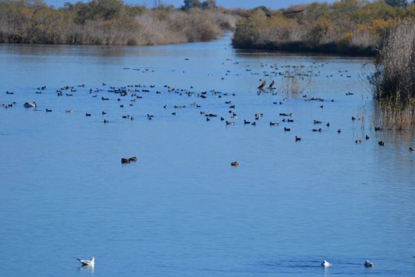 Η λιμνοθάλασσα Μουστού …., αποτελεί τον κεντρικό υγρότοπο του συμπλέγματος. Η υδάτινη επιφάνεια, έκτασης 145 στρ., έχει μικρό βάθος, με μέγιστο τα 5 μ. περίπου. Η επικοινωνία της με τη θάλασσα γίνεται μέσω δύο τάφρων. Το «Βαυαρικό κανάλι», που διανοίχτηκε την εποχή του Όθωνα, σε μήκος 1.180 μ. και την τάφρο «Πόρτες», μήκους 750 μ. Το Βαυαρικό κανάλι εξυπηρετούσε την εκροή των υφάλμυρων υδάτων των πηγών της λιμνοθάλασσας από τις οποίες τροφοδοτείται με συνεχή παροχή όλο το έτος (1.2001.350 κυβικά μέτρα). Η αλατότητα του νερού στη λιμνοθάλασσα μεταβάλλεται σε σχέση με το βάθος του. Στο επιφανειακό στρώμα έως και το 1 m περίπου, επηρεάζεται από τις πηγές της και έχει χαμηλή αλατότητα, ενώ βαθύτερα η αλατότητα είναι υψηλότερη λόγω της διάχυσης θαλασσινού νερού που λαμβάνει χώρα στον πυθμένα.