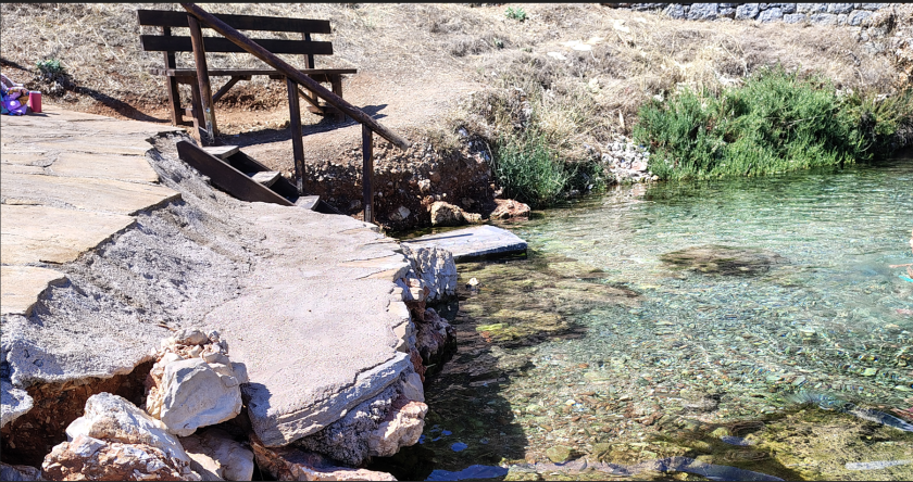 Διακρίνεται η φυσική πρόσβαση στην πηγή του Μουστού στη δεξιά θέση του διαδρόμου που προτιμούν οι επισκέπτες,εδώ με 2-3 σκαλιά και ένα μικρό διάδρομο η πρόσβαση θα γίνει πολύ εύκολη.