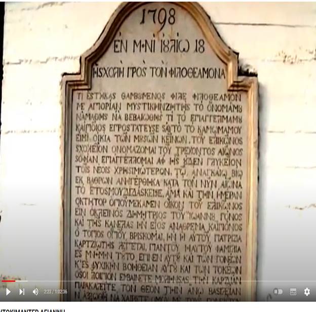 Δημήτριος Καρυτσιώτης, 27η Φεβρουαρίου 1819 , παράγραφο #5 της διαθήκης του «5) Αφήνω εις την πατρίδα μας (χωρίον μας) το κτίριον του σχολείου και την περιουσίαν του Άστρους (Astro) ως είναι»( Φλουδας ,Θυρεατικα Β’ σελ 312) «Δημήτριος Καρυτσιώτης, «Παραιτώ της πατρίδος μου το κτίριον της Σχολής και το υποτακτικόν( Αγροκήπιο) του Άστρους με όλα τα συμπεριλαμβανόμενα εις το κοντράτο (συμβόλαιο) καμωμένου παρ εμού.Μάϊος 1819 Δ.Καρυτσιώτης».