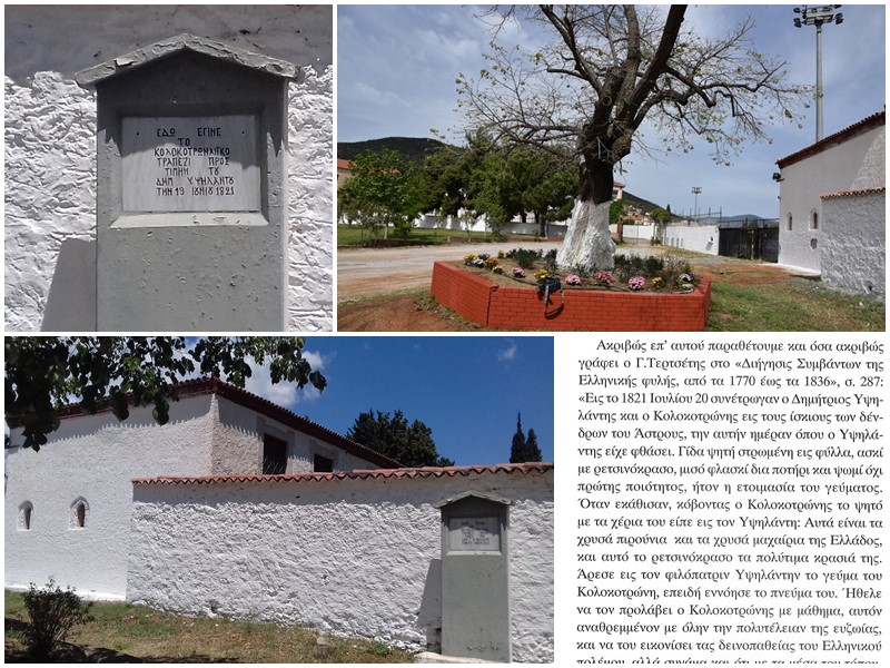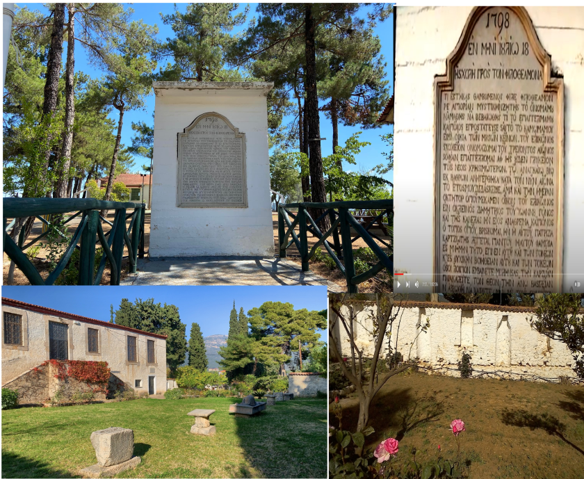 «Στο αγροκήπιο αυτό έλαβαν χώρα δύο σημαντικά γεγονότα της Επαναστάσεως, τογνωστόως«κολοκοτρωναίικοτραπέζιτηςσυμφιλίωσης»στις 19 Ιουνίου 1821, στο οποίο είχαν προσέλθει οι οπλαρχηγοί, προκειμένου να ξεπεραστούν οι αντιθέσεις και να ομονοήσουν για την επιτυχία της Επανάστασης που τότε ξεκινούσε, καθώς επίσης και ηΒ΄ΕθνοσυνέλευσητωνΕλλήνων (30 Μαρτίουέωςτις 18 Απριλίουτου 1823)με την παρουσία οπλαρχηγών, πολιτικών, πλήθους λαού και στρατού. ΕντόςτηςΣχολήςηοποίαπεριλαμβάνεταιστονυπόκήρυξηχώρο, συντάχθηκεηδιακήρυξητηςΕθνοσυνέλευσης».