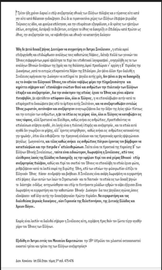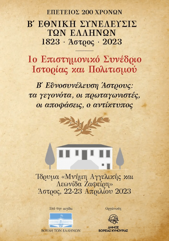 Δεν ξεχνάμε τις «Εν Άστρει» αξιοθαύμαστες ενέργειες» για τα διακόσια χρόνια της γιορτής της εθνοσυνέλευσης και την «Εν Άστρει» έκδοση του επετειακού τόμου, και επίσης την αναφορά το 1823 του Προέδρου του Εκτλεστικού (δηλ,Πρωθυπουργού ) «η Εθνοσυνέλευση της απελευθερωμένης Ελλάδας συνήλθε στο Άστρος».
