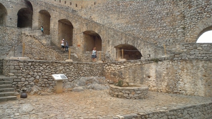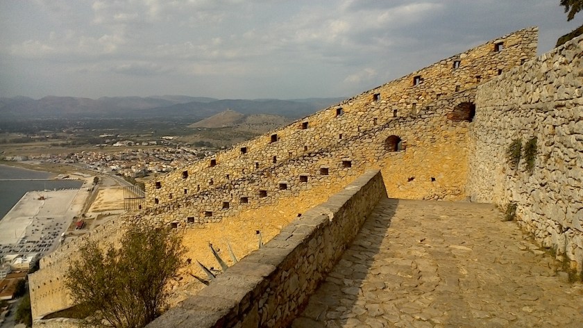 Στο κάστρο του Παλαμηδίου βρίσκεται η φυλακή του γέρου του Μωριά. Στο βάθος στα αριστερά βρίσκεται η είσοδος του μπουντρουμιού, το οποίο όταν κατεβαίνετε το πέτρινο σκαλοπάτι από συγκίνηση και δέος πιάνεται η αναπνοή σας . Τα πέτρινα σκαλοπάτια οδηγούν στο μέρος, όπου με την τσαρούχια του, ο σιδεροδέσμιος γέρος του Μωριά έσκαψε τον βράχο από τον θυμό του για τους Κοτζαμπάσιδες.